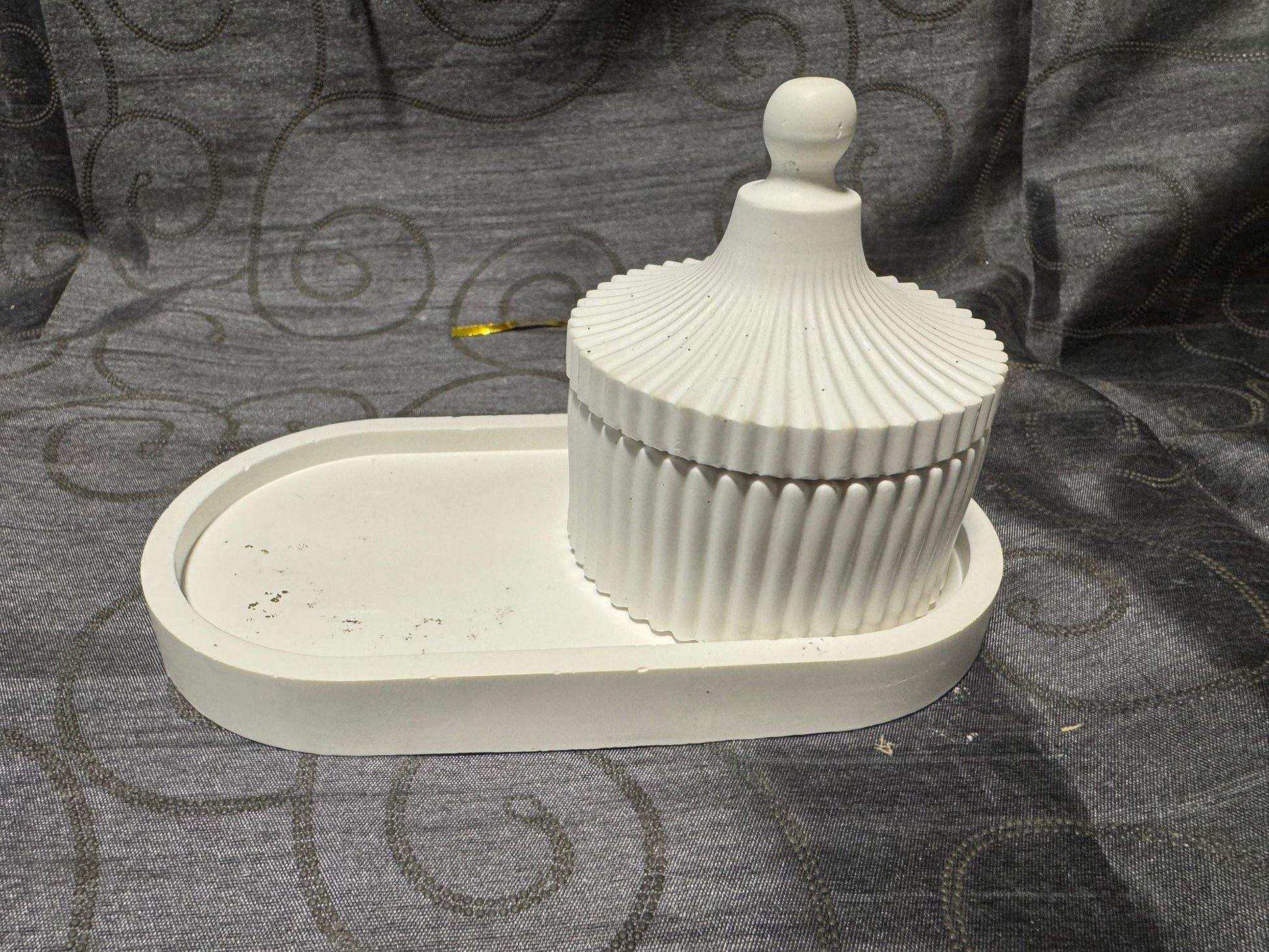 Elevate your space with this handcrafted concrete jar and tray set. Perfect for storing small treasures or adding a touch of minimalist elegance to any room.