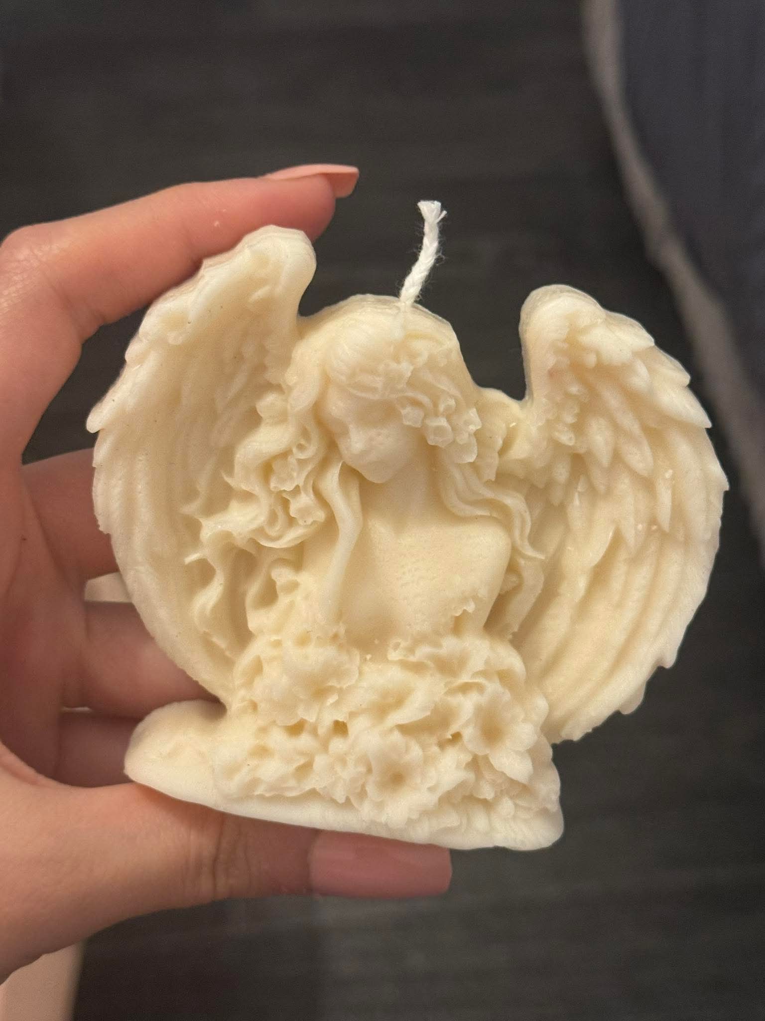 Handcrafted candles inspired by divine beauty. Each piece blends art and light, featuring angelic designs and delicate details to bring warmth, serenity, and elegance to your space.